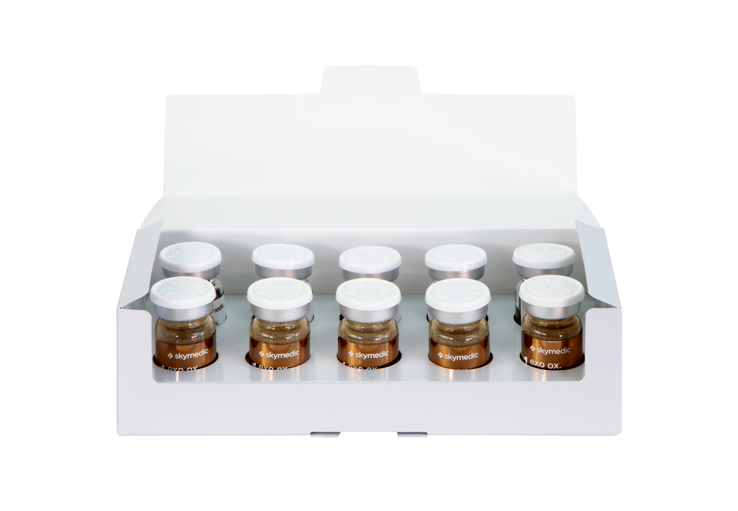 Verpakking van 2×5 fiolen (5×50 mg exosomen + 5×5 ml HA met actieve ingrediënten)